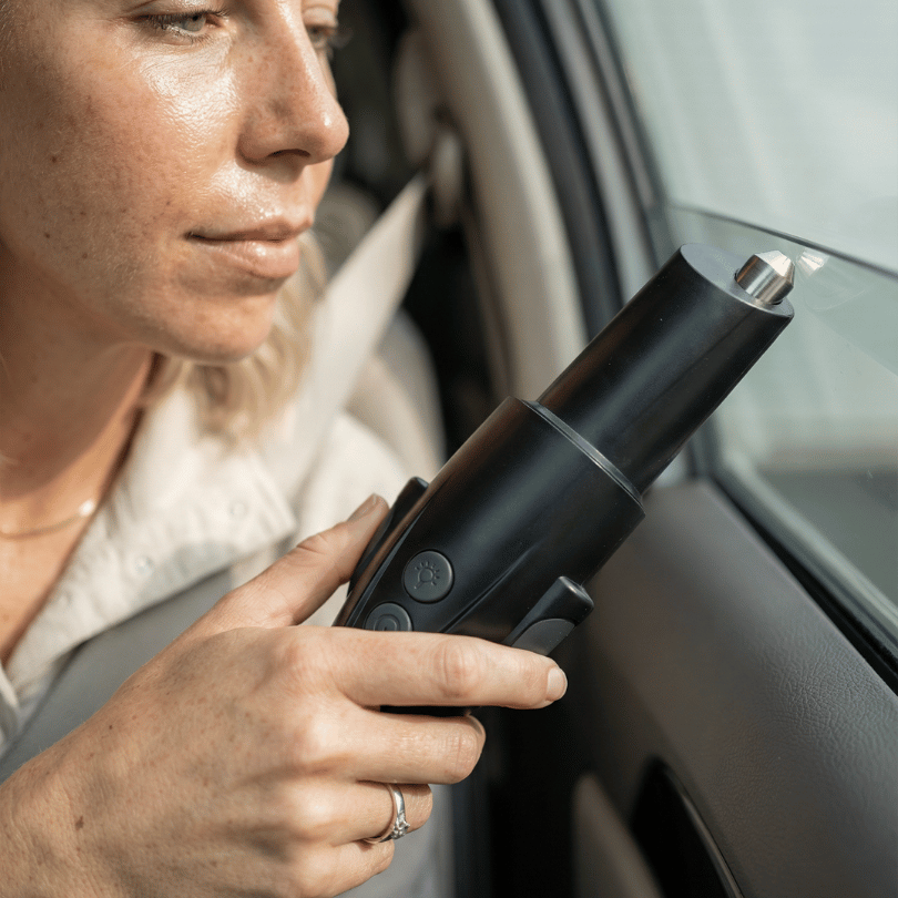 Absolutely. SAFE is lightweight, cordless, and rechargeable, and it’s sized to fit easily in a car door or console. The safety tools are built in and only used intentionally, making it safe for daily driving and family use.